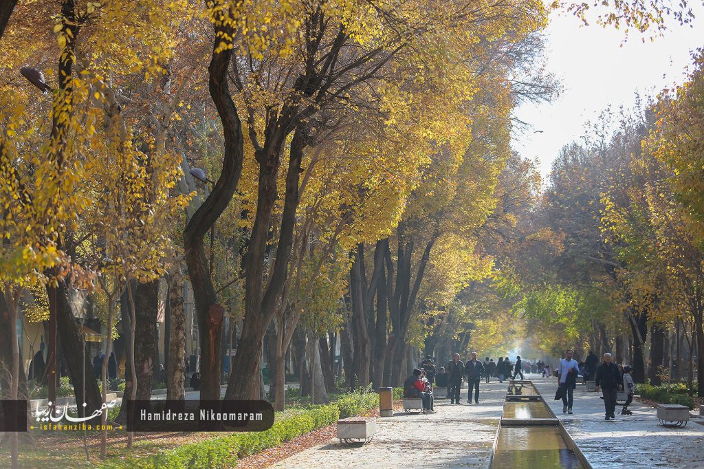 Behold the golden beauty of Isfahan when the leaves of the glowing trees in the Chaharbagh Passage fall down to join the feet of passers-by for performing their autumnal orchestra.